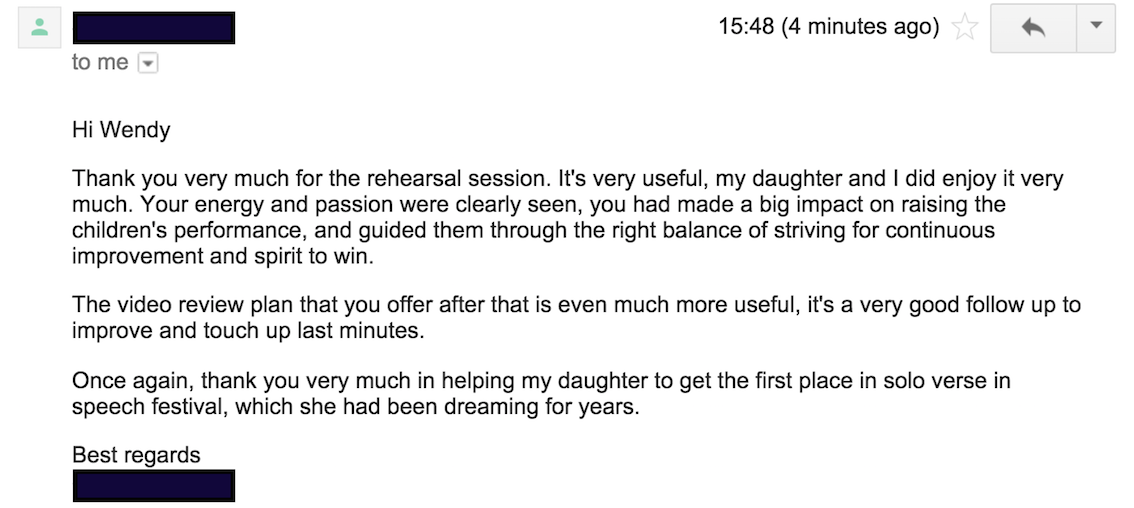 We have a passion for helping students with the Speech Festival and have been providing training for over 15 years experience with a very strong track record.